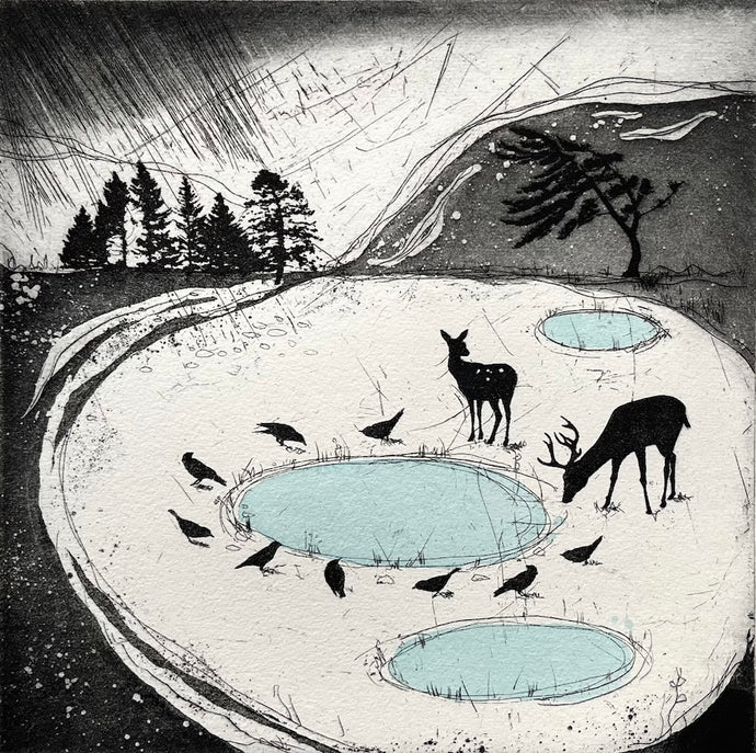 Fiona Watson (b.1952) is an artist with a diverse body of work including etching, cyanotype, digital imaging, screenprinting, photography, collage and painting. She is a prominent member of the Glasgow Print Studio and exhibits regularly at the Royal Academy Summer Shows, London. Her work is characterized by a whimsical, yet sometimes cynical, playfulness. She is interested in Eastern mysticism and symbolism and is fascinated by the patterns, rhythms, forms and colours of nature in a microscopic and macroscopic sense.