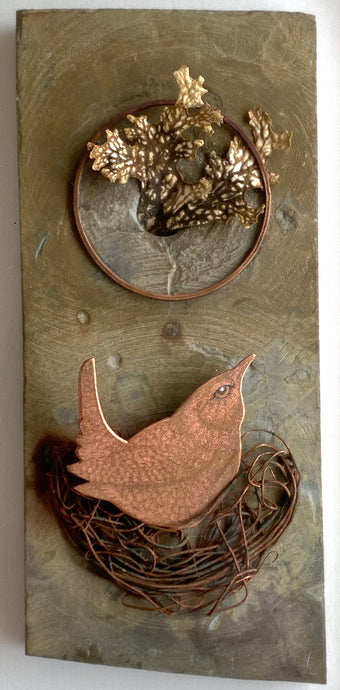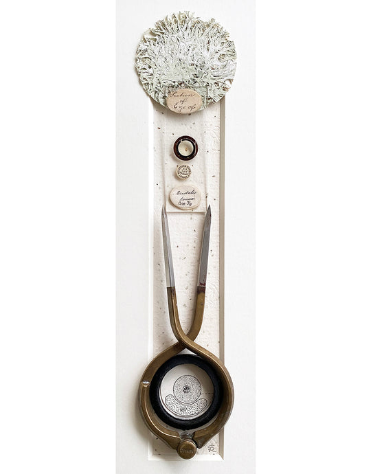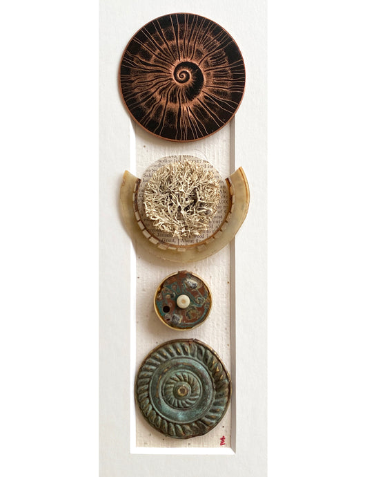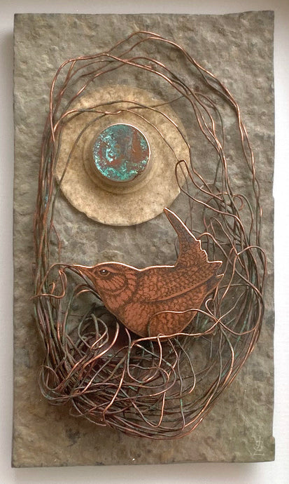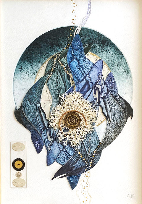 Louise Scott is a Glasgow-based artist specialising in copper plate etching featuring Scottish wildlife and marine life. Lockdown in 2020-21 gave Louise the opportunity to re-evaluate the artistic direction of her work and this resulted in more experimental, unique prints formed from combinations of small plates, blind embossing, hand-colouring and collage. All collages are framed and any organic matter or metal is sealed for preservation.
