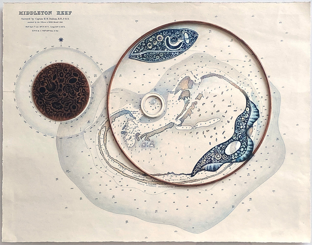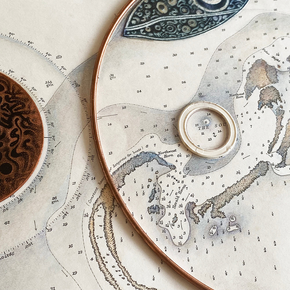 Unique etching collage - monoprint, copper & marine chart