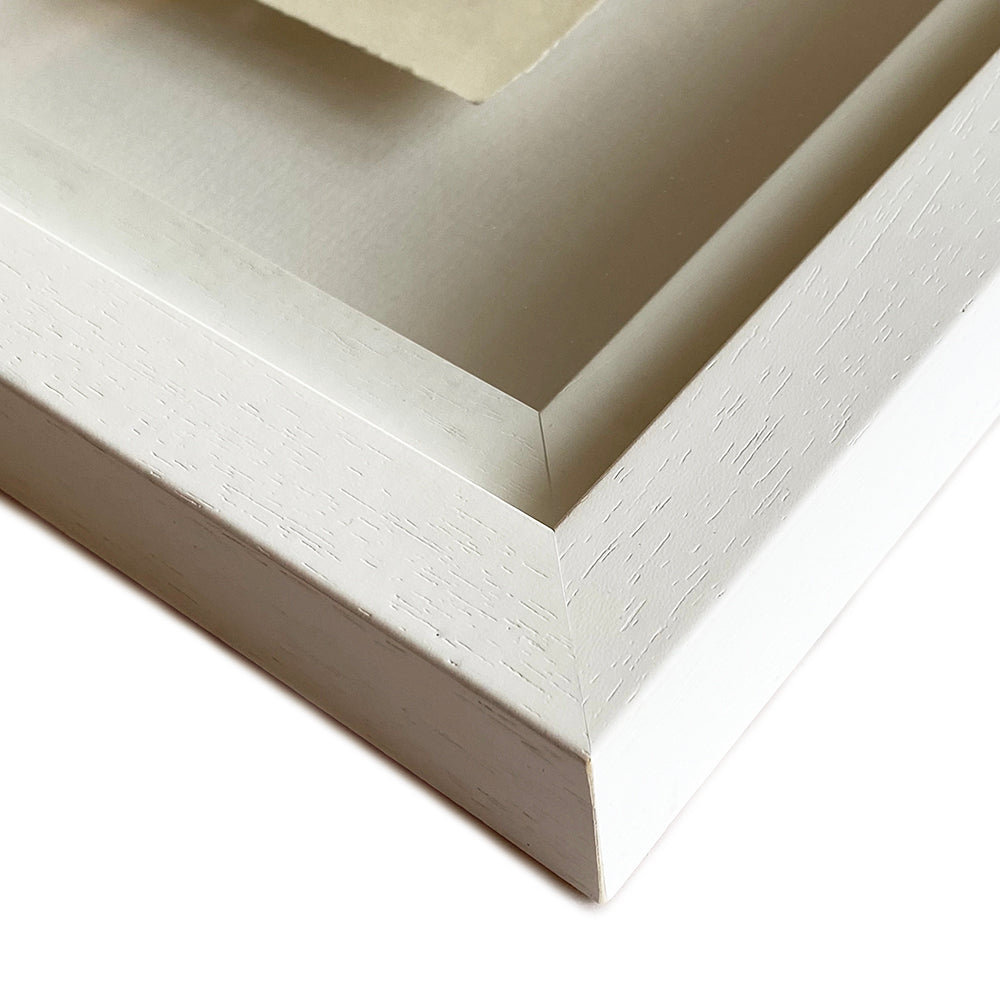 Framed in white box frame (glazed)
