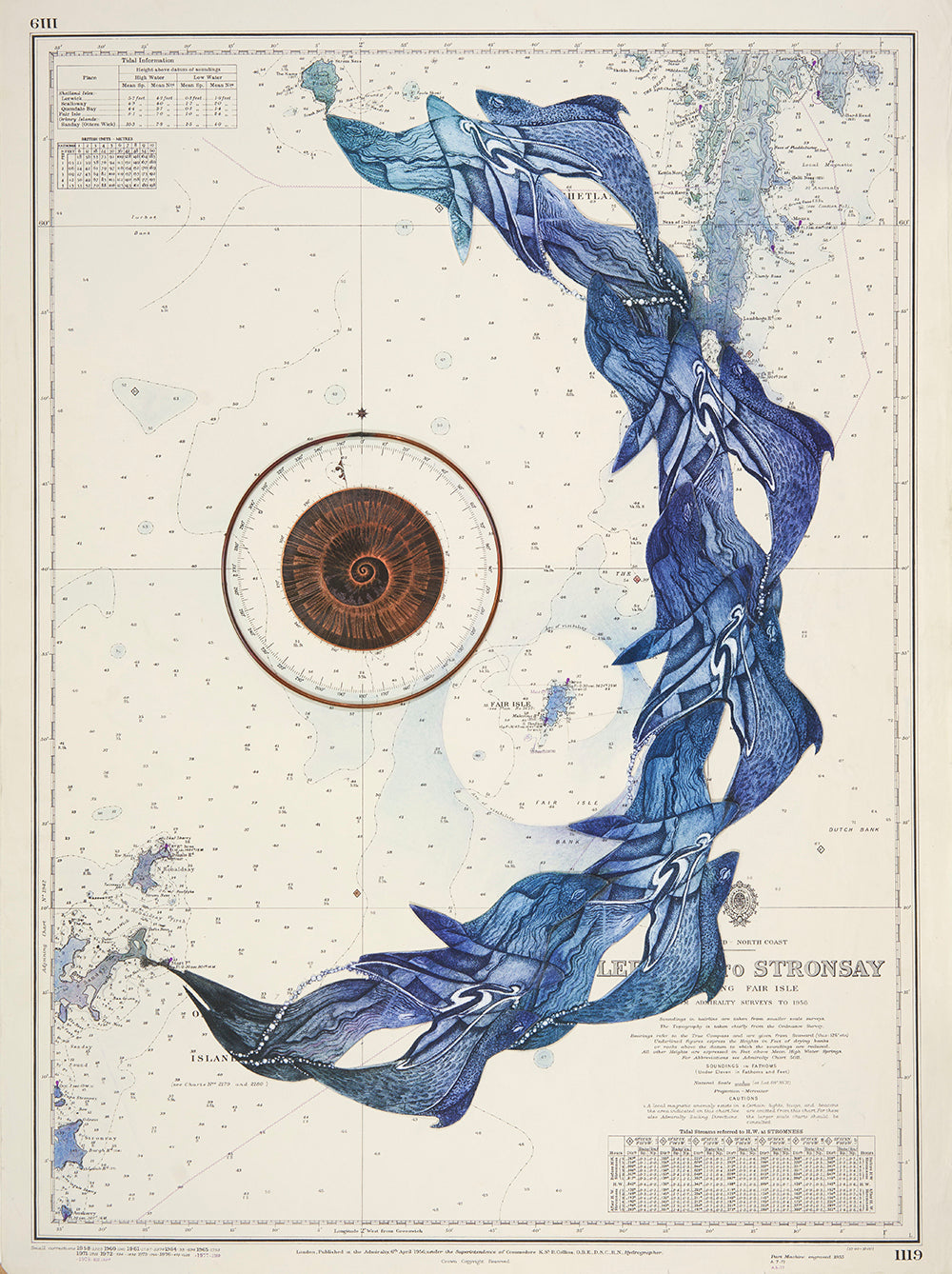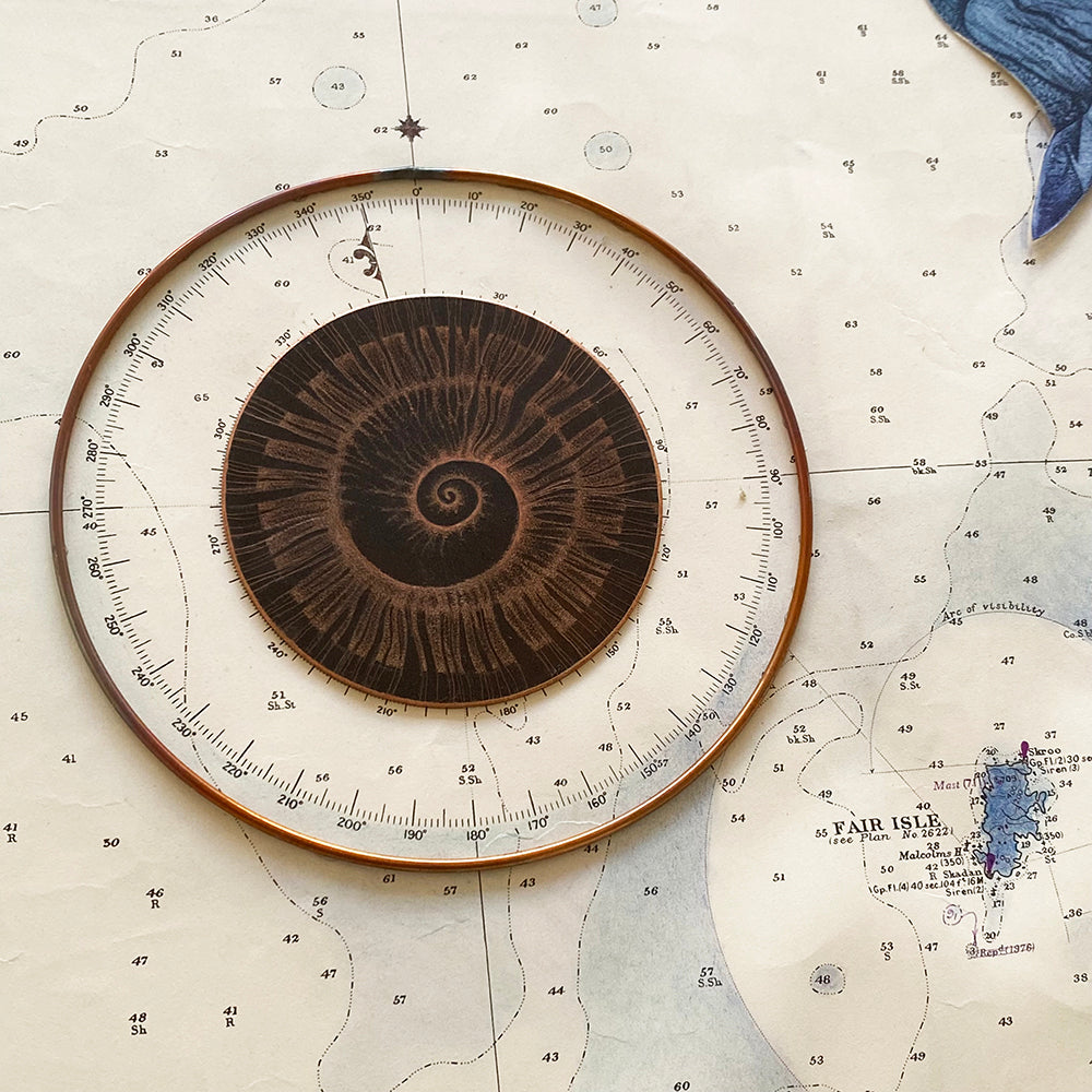 Unique etching collage - monoprint, copper & marine chart