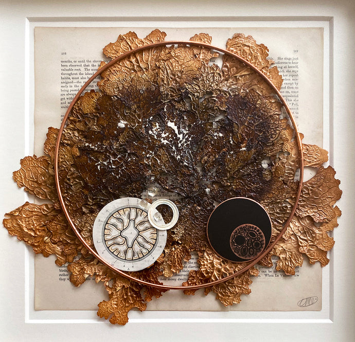 Louise Scott is a Glasgow-based artist specialising in copper plate etching featuring Scottish wildlife and marine life. Lockdown in 2020-21 gave Louise the opportunity to re-evaluate the artistic direction of her work and this resulted in more experimental, unique prints formed from combinations of small plates, blind embossing, hand-colouring and collage. All collages are framed and any organic matter or metal is sealed for preservation.