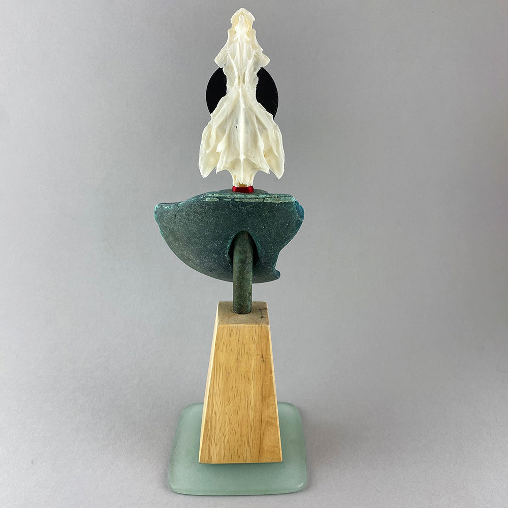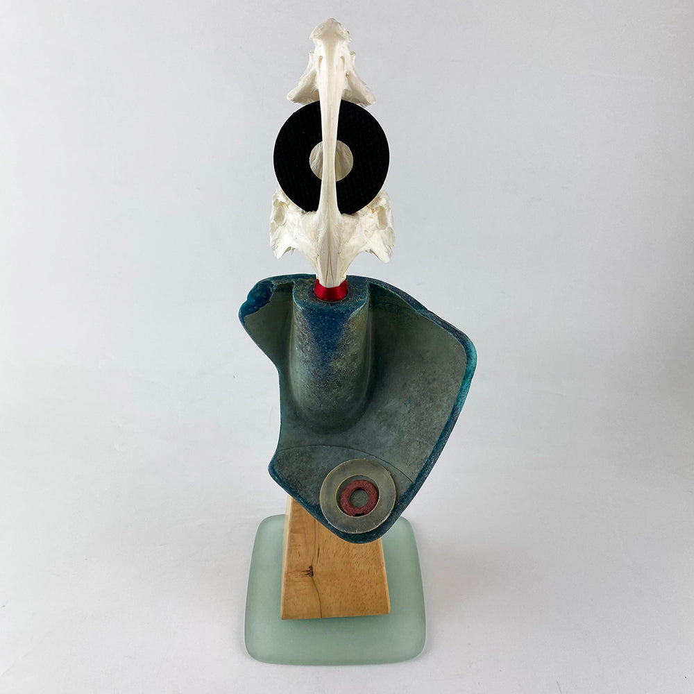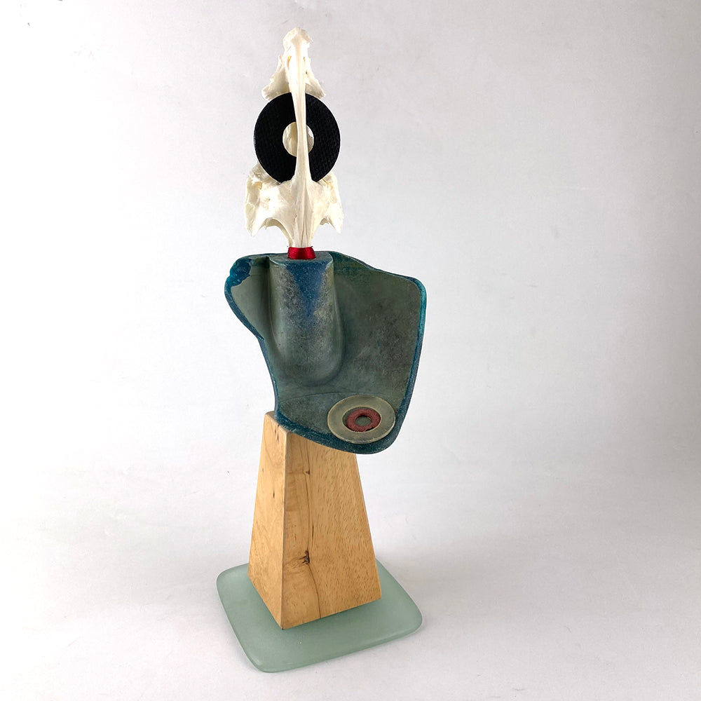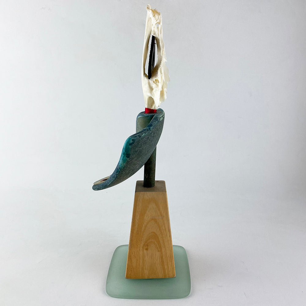 Unique construction - wood & found flotsam on frosted glass base