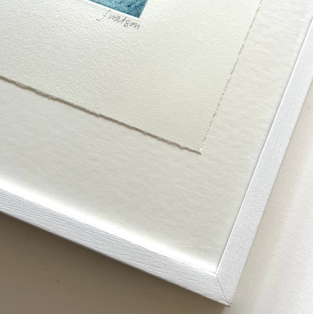 Framed in a white wood frame (glazed)